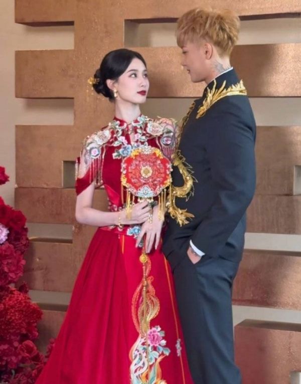 在设计理念上,这对婚服实现了经典与创新的完美平衡。设计师选用了十种源自明清时期的传统刺绣工艺,却巧妙搭配现代面料与剪裁手法。金丝银线在轻盈的新型面料上游走,既保留了传统婚服的华贵气韵,又赋予了符合当代审美的简约轮廓。