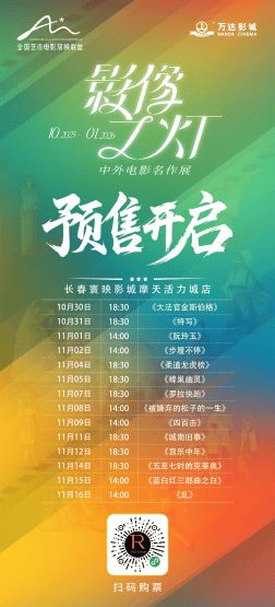 目前,影展已开启预售。“影像之灯” 中外电影名作展,不仅是一次电影放映活动,更是一场关于人文、艺术与思想的交流盛宴。让我们以影像为灯,在长春的深秋与初冬,共赴这场跨越时空的艺术之约,在光影流转中感受电影的永恒魅力,跨越半个世纪的光影之约。