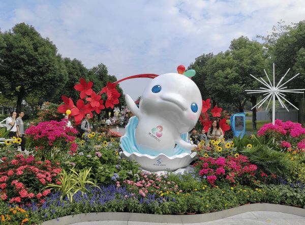 广州市儿童公园分会场展示的十五运会吉祥物。