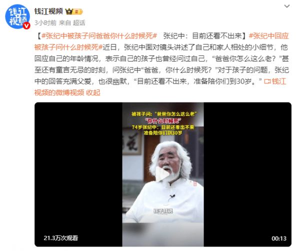 近日,74岁的张纪中在分享家庭生活时,提及孩子们曾因他的年龄发出天真提问,不仅有“爸爸你怎么这么老”,更有“爸爸,你什么时候死”这般童言无忌。对此,张纪中以充满父爱与幽默的方式回应道:“目前还看不出来,准备陪你们到30岁。”