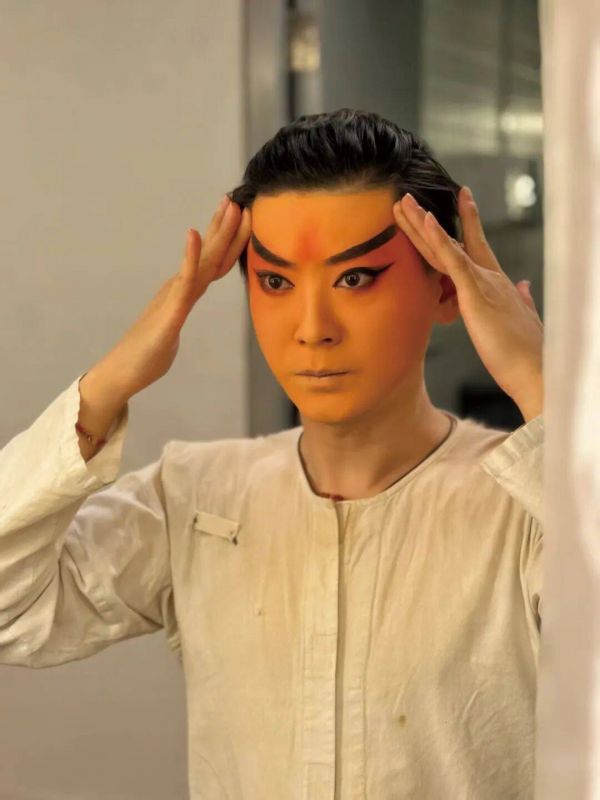 比如我们老生,扮的是“俊妆”,就是普通男人的装扮,淡淡的黄脸,画上黑眼睛、黑眉毛,然后“吊眉”——用带子把头勒起来。这么一勒,人的状态瞬间就不一样了,精神立刻就提起来了。普通人眉毛稍微掉下来一点,感觉就全没了。舞台需要夸张和放大,因为观众离得远,你必须通过这种方式传递神采。