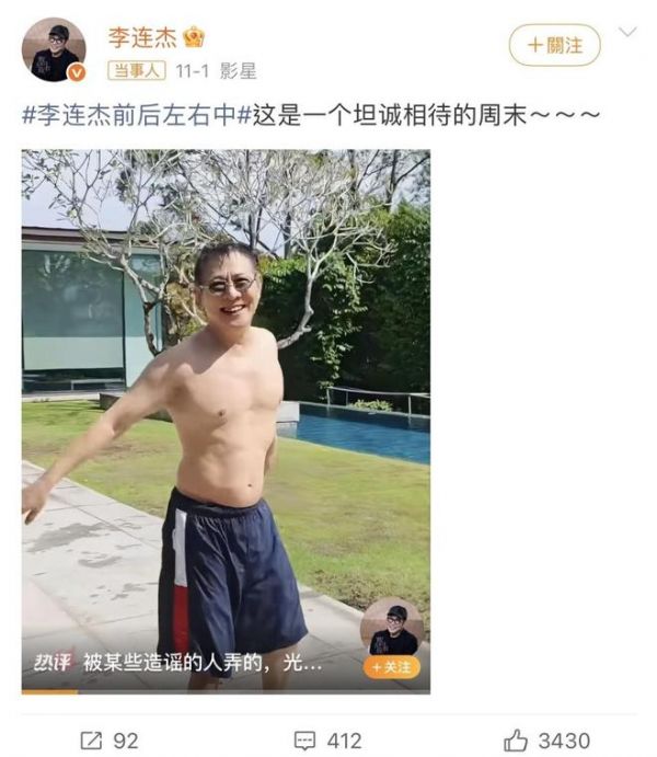 李连杰一改病容,状态回春,却遭换心、换血的质疑,脱衣光膀力证清白