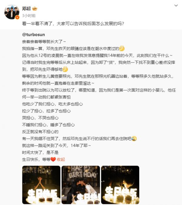 孙俪发长文为儿子等等庆生,邓超感动到落泪:看一半看不清了