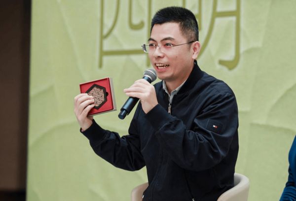 甬式家具榫卯技艺市级代表性传承人鲁鸿辉这次带来了一款精美的文创杯垫,以“合一”命名,采用榫卯技艺制作,源自阳明格竹悟道的典故。该文创产品斩获2025年“宁波特色伴手礼”与第二届“甬韵”出海好礼双重荣誉。他说:“我们年轻一代的传承人,有一个很重要的工作就是做好前沿设计理念与传统技艺的‘软着陆’,让过去拥有现在,更拥有未来。”