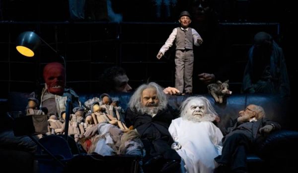 柏林剧团在前年和去年接连在上海演出《布莱希特的鬼魂》,这部偶剧是对“布莱希特风格”的简明拆解:关于他在对白和歌词中追求的“娱乐调侃政治”、关于曾盛行在德国歌厅和小酒馆的“卡巴莱”脱口秀+杂耍表演风格,以及最重要的扮演和间离理论。