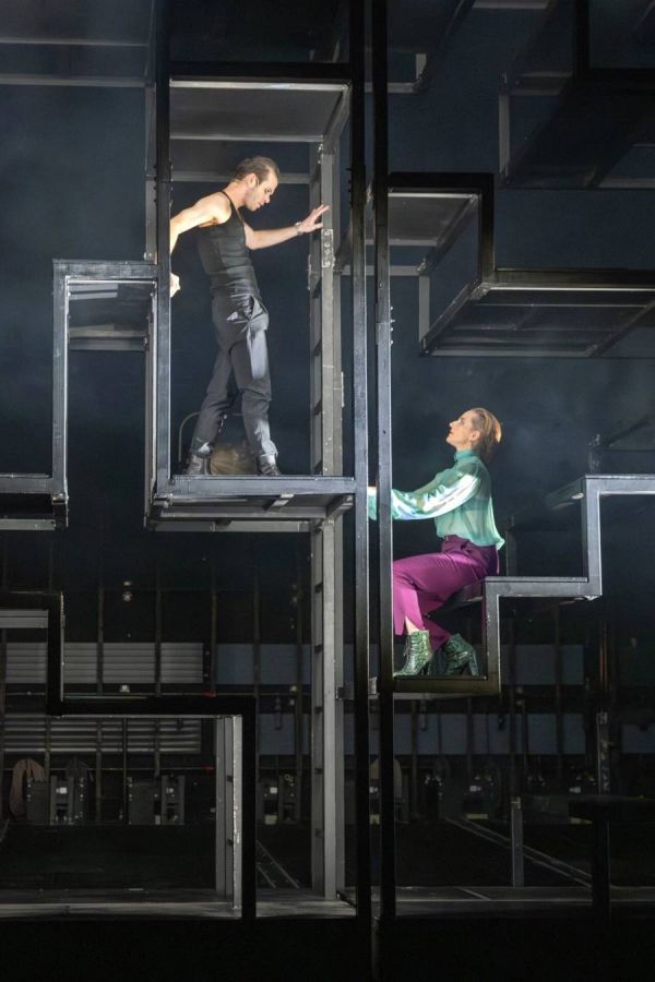 表现在《三分钱歌剧》,当灯光照亮廉价又炫目的帷幕,穿着艳丽的演员们顺着冰冷的立体钢架攀爬,放浪形骸的麦基提醒观众他在假扮侥幸免死的恶棍——布莱希特在1920、1930、1940和1950的变化的创作观,被打包陈列在这场演出里。