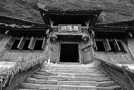 空洞亲迎光照耀;苍崖时有凤来仪。朝阳洞与徐悲鸿居住的天师洞近在咫尺。洞窟正对东方,每当晨光初现,便见满山红紫,气象万千。这副楹联与徐悲鸿留在青城山的另一副楹联“白马秋风塞上,杏花春雨江南”一样,充满了灵动的画面感。