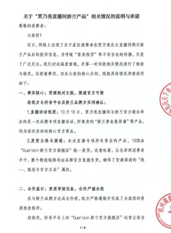随后,贾乃亮方发布情况说明回应,表示货源绝对正规,渠道官方可溯。其合作机构和团队表示,关于网络谣言我们需要谨慎辨别,在当今明星直播带货行业,主播的个人信誉已成为最珍贵的商业资产。