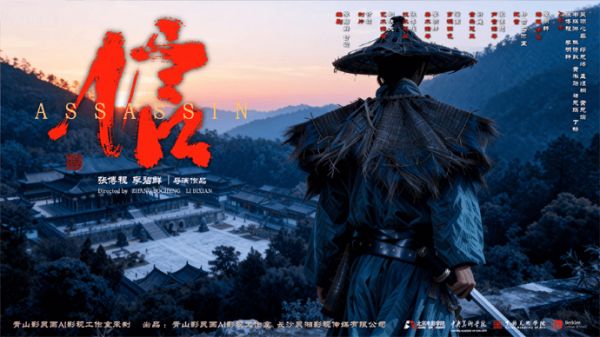 戈壁滩上,黄沙漫卷,一道身影伫立在断崖边缘。他头戴斗笠,身着蓑衣,手扣缰绳,牵着一匹瘦马,狂风呼啸中岿然不动,仿佛与天地融为一体。这极具武侠韵味的画面并非出自某部经典武侠电影,而是国内首部AIGC原创武侠剧情短片《信》的开篇。