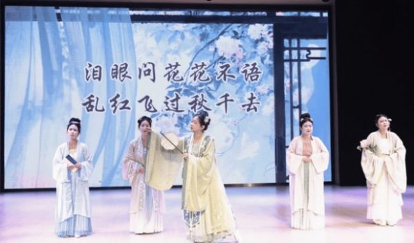 来自国内外17所高校、21支参赛队伍带来的表演,在 “国风雅韵”“江南春秋”“古韵新声”“千年词笔” 四大篇章中呈现。其中,“国风雅韵”聚焦《诗经》经典。陕西师范大学演绎《诗经·秦风·无衣》;西北师范大学则带来《诗经・秦风・蒹葭》;上海应用技术大学的俄罗斯留学生选择了《诗经·采苓》,他们的吟诵虽略带口音,却满含对中华诗词的热爱。复旦大学教授、吟诵专家蒋凡评价:“《诗经》中的作品有慷慨,有柔婉,还有生活气息,这次大会很多节目做到多者兼而有之,文学和音乐水平有明显提升。”