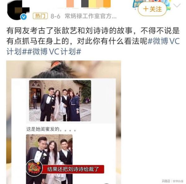 然后经考古她的过往,网友发现她“手滑点赞”的次数不少,她还疑似过分在意、针对刘诗诗。当初她和袁弘的婚礼刘诗诗吴奇隆都参加了,她闺蜜发合照的时候专门把刘诗诗裁了,她本人还点赞了这条动态。