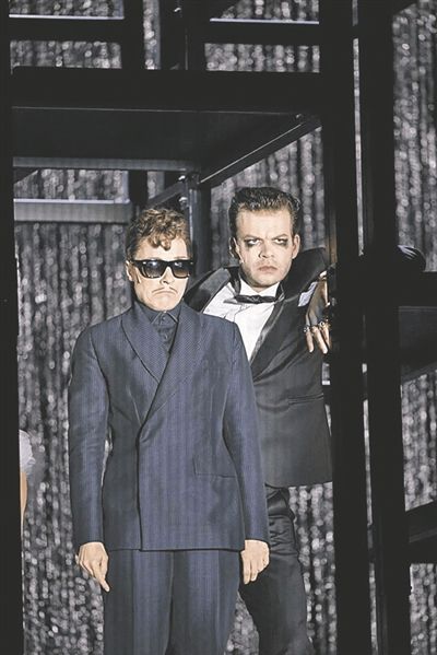 《三分钱歌剧》向北京观众展现了布莱希特标志性的“间离”效果,无论是现场乐队不时需要跳出演奏家身份、变作“街头硬汉”等各种角色,还是台上演员出其不意打破“第四面墙”的互动,感性沉浸与理性思考的穿插切换,让观众从始至终直面这部经典之作棱角锋利的叩问和思辨。同时,演员们强悍的表演功底也为这部作品流畅到位的呈现大大添彩,他们一边要在复杂的格子间内不停地爬上爬下、精准走位,一边要完成库尔特·魏尔谱写的难度不低的唱段,并以相当外放夸张的表演鲜明塑造人物的性格特征。