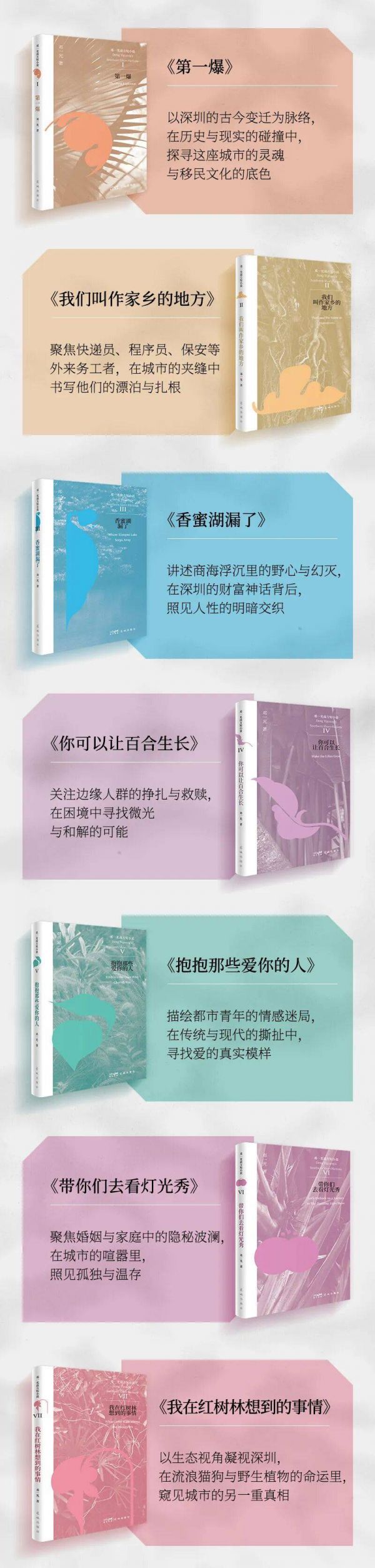 该系列小说不仅是深圳的城市记忆,更以文学的方式记录了中国改革开放以来波澜壮阔的社会变迁与生生不息的人文精神,照亮在异乡倔强绽放的每一位奋斗者。