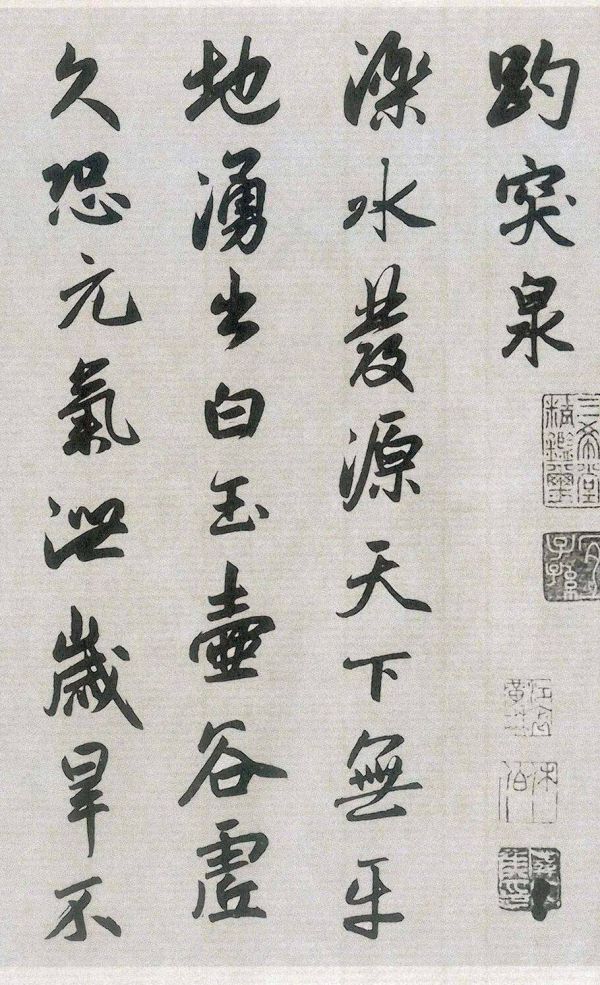 趵突泉。滦水发源天下无,平地涌出白玉壶。谷虚久恐元气洩,岁旱不愁东海枯,云雾润蒸华不注,波澜声震大名湖。时来泉上濯尘土,冰雪满怀清兴孤。