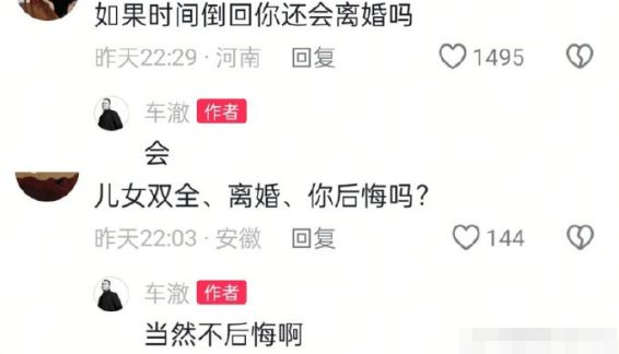 面对网友 “儿女双全仍离婚是否后悔” 的质疑,车澈直言 “不后悔啊”;被追问 “时光倒流是否还会离婚”,他更仅以一字 “会” 回应。这份冷硬态度引发网友热议。