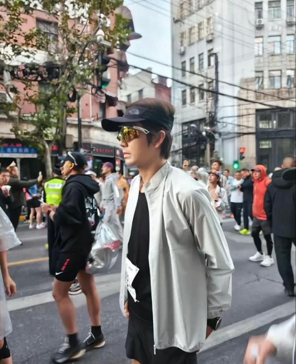 当天清晨,钟汉良准时出现在上海马拉松起点区域,他身着专业跑步装备,外面还套了一件灰色防风外套,在起跑前,他进行了系统的热身准备,包括拉伸、慢跑激活等专业动作,神情专注。