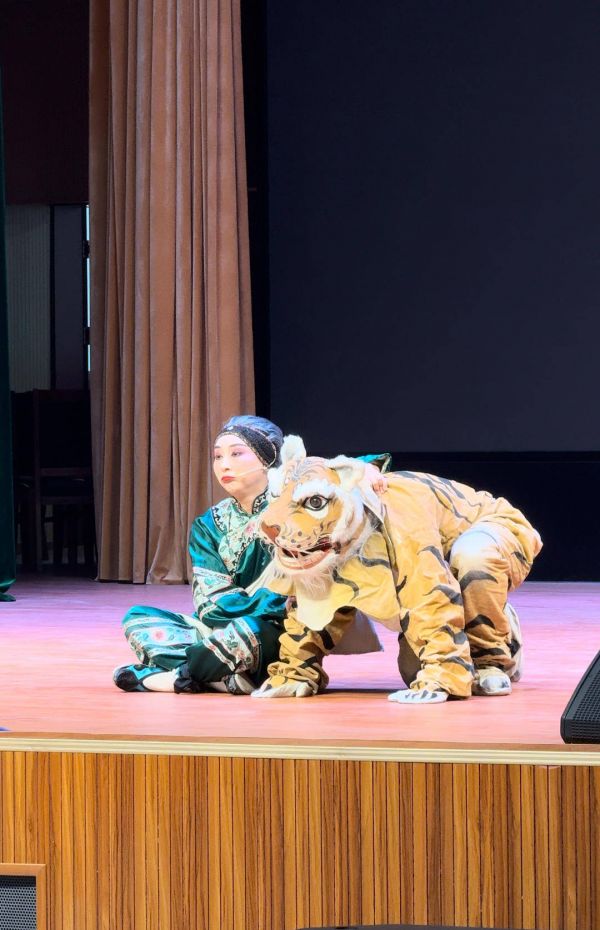 当天下午两点,演出在经典川剧选段《三英战吕布》中拉开序幕。高亢嘹亮的唱腔搭配刚劲利落的表演,瞬间将观众带入波澜壮阔的历史场景。随后,诙谐风趣的《皮筋滚灯》、尽显飒爽的《扈家庄》等节目轮番登场,精彩纷呈。