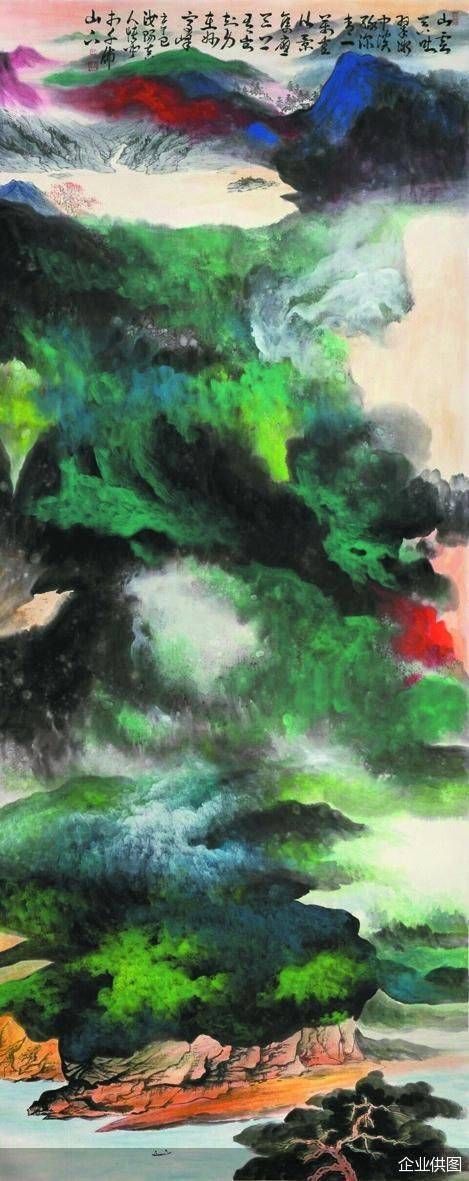 第一跳:从“青绿勾勒”到“有边界的画彩”。传统青绿山水以“空勾填色”为标志,色彩被严格锁入墨线。孙博文早期《白云缭绕香漫山》(1995年)仍守此律,但已用“顺笔皴”把色块拖出方向性,使色带成为“具速度感的轮廓”。这种“以色代线”预示了后期抽象符号的生成逻辑:色彩不再填充形体,而是自造形体。