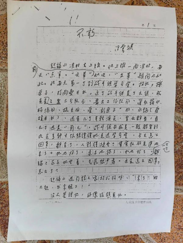 说回汪曾祺。汪先生除了《名士与狐仙》这一篇外,还有一篇《不朽》,也是我去他家看到他刚写的,我即要过来(汪老头真是“随遇而安”呀!)。回来没两天也给发出来了,我即用个信封装上两百块钱稿费和几张报纸(编者是可以到财务室为作者代领稿费的),打车给先生送了过去。同时将手稿原件给还了回去,我只留了一个复印件。那时我们没有什么手稿意识,只是觉得他的字好看,又能看到涂改的地方,可一窥像汪先生这样的作家,是如何遣词造句的,是怎么修改的,好学习一点创作的方法来提高自己。