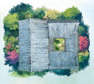 昆明市晋宁区福安村“一颗印”民居俯瞰图。 马睿姗绘