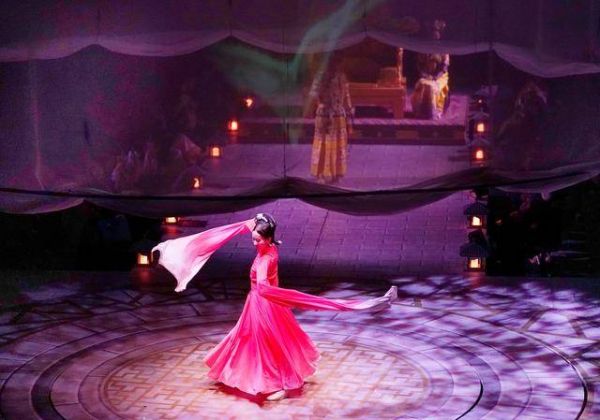 “整场演出沉浸又有梗,布景、舞美、杂技都让人眼前一亮!”有观众在观剧后发出这样的感叹。该剧以独属于现场艺术的表达方式,构建了荧屏无法呈现的视觉奇观。例如华妃悲情“下线”一幕,演员借助威亚悬空行走;甄嬛与果郡王情感戏份,通过高空绸吊与双人舞演绎。这些创新的表达方式,在高密度叙事中带来张弛有度的观演体验。