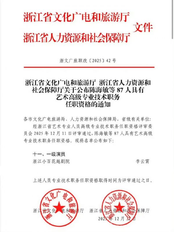【#李云霄已晋升一级演员#】#李云霄一级演员# 恭喜@李云霄-lyx 荣升国家一级演员! 台上眼波流转,演尽悲欢;台下心无旁骛,磨砺技艺。舞台会记住每一份专注与热爱,这份荣誉是最好的见证。#李云霄[超话]#