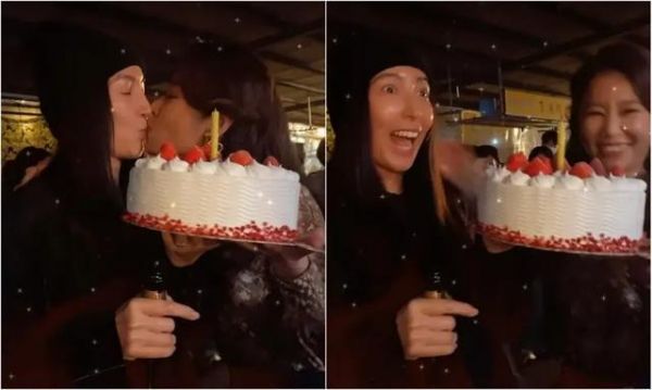 而杨谨华日前也公开林心如庆生现场的片段,只见捧着生日蛋糕吹蜡烛,杨谨华要在她脸颊献吻,怎料林心如转过头,和她嘴对嘴亲了一口,让杨谨华瞪大双眼,吓了一跳。她也发文祝林心如生日快乐,「祝福妳每天都吃好喝好睡好,开开心心,健健康康,充满活力」,展现两人之间的好交情。