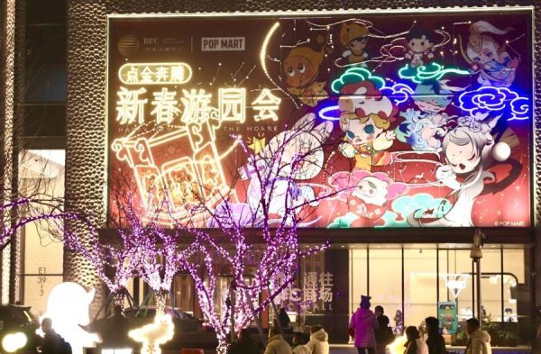 作为豫园灯会的重要组成部分,BFC风尚潮流灯区联合泡泡玛特打造的新春游园会空降外滩。