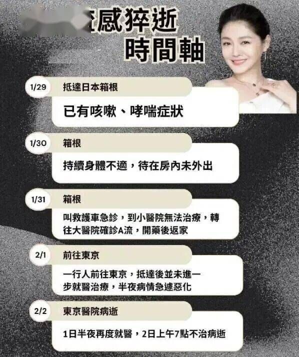 2025年2月3日,小S通过经纪人证实姐姐离世的原因:“因流感并发肺炎,不幸离开了我们。”