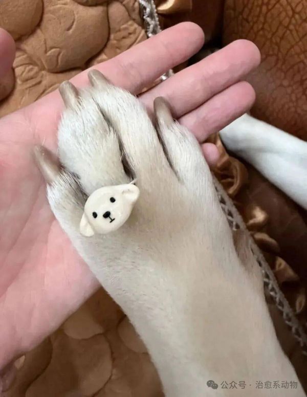 这个戒指不仅大小恰到好处,而且与狗子毛茸茸的爪子相得益彰,更奇妙的是,戒指的颜色和狗子的毛色搭配得十分和谐,仿佛是为狗子量身定制的一般。