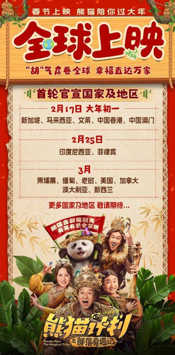 讲述两个女人被一个可怕的豪门家族猎杀,要携手“反杀”的故事。萨玛拉·维文、凯瑟琳·纽顿、莎拉·米歇尔·盖拉、伊利亚·伍德、肖恩·海托西、内斯特·卡博内尔、凯文·杜兰、大卫·柯南伯格出演,第一部导演Radio Silence继续执导。春节档合家欢喜剧《电影熊猫计划之部落奇遇记》官宣将于2月17日(大年初一)在新加坡、马来西亚、文莱、中国香港、中国澳门上映,于2月25日在印度尼西亚、菲律宾上映,于3月在柬埔寨、缅甸、老挝、美国、加拿大、澳大利亚、新西兰上映,更多国家及地区敬请期待。