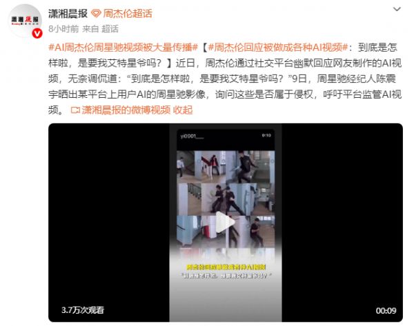 周杰伦被AI视频玩坏,无奈喊话:要我艾特星爷吗?