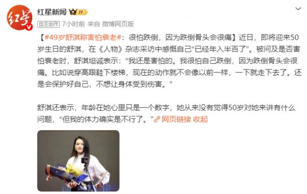 近日,即将迎来50岁生日的舒淇在接受《人物》杂志采访时,大方谈及自己对年龄与衰老的感受。她坦言虽然年龄只是一个数字,但身体的改变确实让她有了新的顾虑。