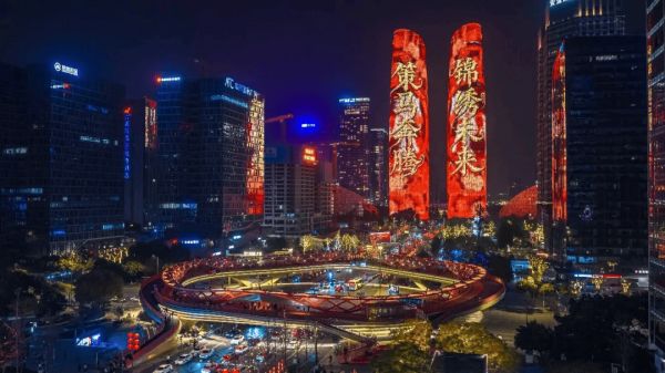 除夕,象征着一年的守候与团圆,承载着丰盈与祈愿。作为城市地标,成都高新区天府双塔用光影给市民游客打造了一场极具文化底蕴的节日盛宴。