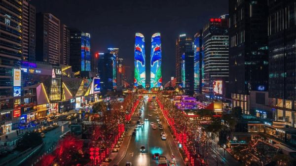 成都有多宠市民?218米高大楼上演灯光秀,整条街封掉赏灯