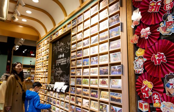 2月17日,游客在福州市三坊七巷旅游纪念品店里挑选旅游纪念品。 新华社记者 魏培全 摄