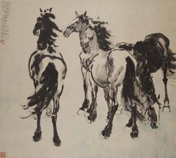 近代以来,徐悲鸿的马画可谓“一骑绝尘”,他在中国绘画史上开创了写意画马的先河,即以中国笔墨为体,以西方写实技法为用,其影响之深远,至今沛然。