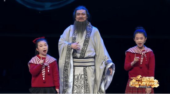 为让文化赋能更具象、更鲜活,晚会深挖山东文化IP,以科技为桥梁实现传统艺术的现代表达,让非遗技艺在创新中传承。作为国家级非物质文化遗产,山东琴书以琴为骨、乡音为魂,承载着齐鲁儿女的深厚情感与集体记忆。《老师傅“遇”AI》节目中,老艺人同台献艺,指尖捻弦、乡音悠扬,身旁的AI机器人则以精准算法接腔对唱,为非遗传承注入新潮活力;情景武术《传承·共生》里,人形机器人与武校学生相向而立,抱拳行礼、切磋招式,将水泊梁山武术的刚劲豪迈与机器人的精准利落完美融合,在刚柔并济间彰显齐鲁文化中的“忠义”内核。