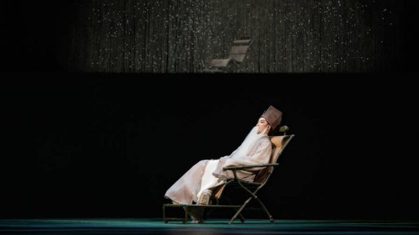而导演司徒慧焯的着力,在于铺陈与留白的繁简结合,既保留了一定程度上的写意之美,又使舞台具有鲜明的现代风格。以形似窗帘的透光柔性材料为核心舞台元素,通过开合、升降、摆动,配合灯光的运用,实现场景转换、情绪外化与时空模糊;后台、侧台的开放设计,让舞台生出前景、中景、后景的层次感,结合移动平台,整座舞台便如梦境般流动起来。
