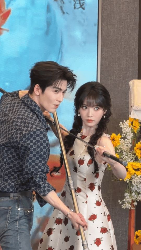#张凌赫挑眉田曦薇wink# 啊啊啊完全美哉!#逐玉微博追剧团# 现场,张凌赫和田曦薇复刻剧中名姿势还不忘饭撒!张凌赫挑眉田曦薇wink,每一帧都是killing part!