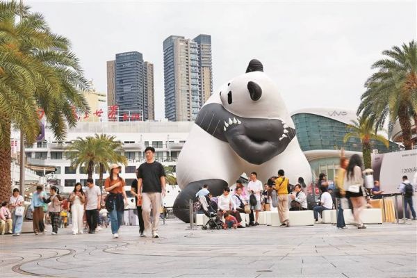 此外,由招商文化联合商管团队策划,深圳湾公共艺术季·蛇口展区还与深圳艺术周特别单元联动呈现。艺术家赵半狄的新作《2026年熊猫表情》(上图)已于3月21日在海上世界全球首发。作品中,两只轻轻拥抱、并肩站立的熊猫,构成了一幅宁静而深邃的画面。与以往作品中熊猫的状态不同,这件作品回归到一个极为简单却感人至深的动作——拥抱。许多观众在熊猫雕塑前驻足良久,互动留影。观众赵女士表示:“两只熊猫抱在一起的样子,满是温馨,这种纯粹的温情直击人心。”