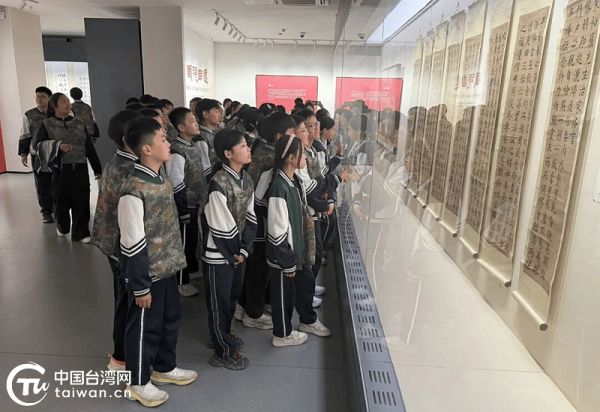 学生们集体参观“风规自远——傅斯年先生藏品与名家题赠集萃”专题藏品展。(中国台湾网发)