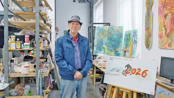 雷菲力与他的新作《2026·骏驰高铁绘》 吴 文 摄