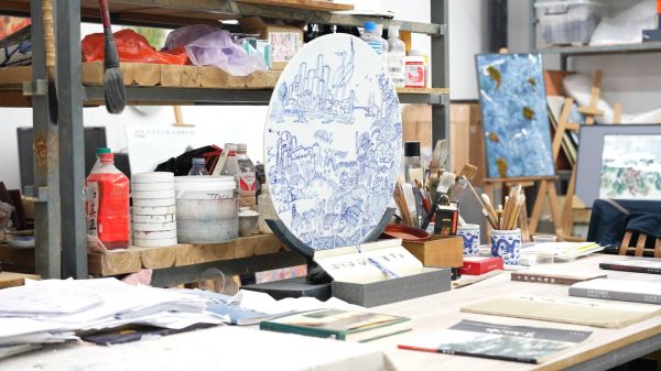 同时,雷菲力也自豪地将中国的飞速发展展现在作品中。在他的最新作品《2026·骏驰高铁绘》中,健硕的奔马与红色的“2026”数字浑然一体,呼啸的高铁列车与承载记忆的绿皮火车在青白交织中悄然衔接。为了表现高铁金属外壳的光泽,他尝试了数十种青花料的配比,力求在传统的单色釉中表现出工业文明的精密与现代感。“没有任何地方能像景德镇这样,把艺术与生活拉得这么近,让陶瓷迸发出新的色彩。”雷菲力抚摸着光洁的瓷面,眼中满是热爱与赞誉。