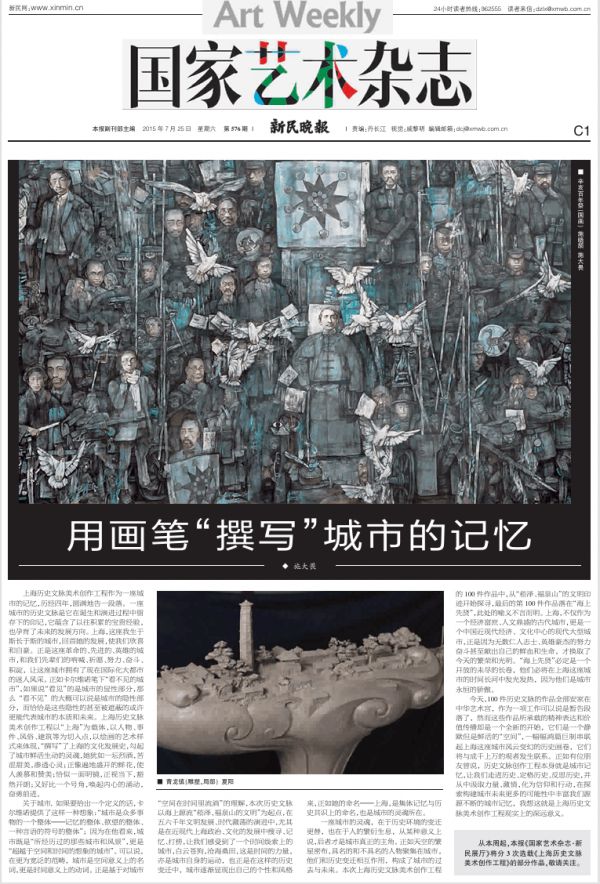 上海历史文脉美术创作工程作为一座城市的记忆,历经四年,圆满地告一段落。一座城市的历史文脉是它在诞生和演进过程中留存下的印记,它蕴含了以往积累的宝贵经验,也孕育了未来的发展方向。上海,这座我生于斯长于斯的城市,回首她的发展,使我们欣喜和自豪。正是这座革命的、先进的、英雄的城市,和我们先辈们的呐喊、祈愿、努力、奋斗、积淀,让这座城市拥有了现在国际化大都市的迷人风采。正如卡尔维诺笔下“看不见的城市”,如果说“看见”的是城市的显性部分,那么“看不见”的大概可以说是城市的隐性部分,而恰恰是这些隐性的甚至被遮蔽的或许更能代表城市的本质和未来。上海历史文脉美术创作工程以“上海”为载体,以人物、事件、风俗、建筑等为切入点,以绘画的艺术样式来体现,“撰写”了上海的文化发展史,勾起了城市鲜活生动的灵魂,她犹如一坛烈酒,苦涩甜美,渗透心灵;正像遍地盛开的鲜花,使人羡慕和赞美;恰似一面明镜,正视当下,豁然开朗;又好比一个号角,唤起内心的涌动,奋勇前进。
