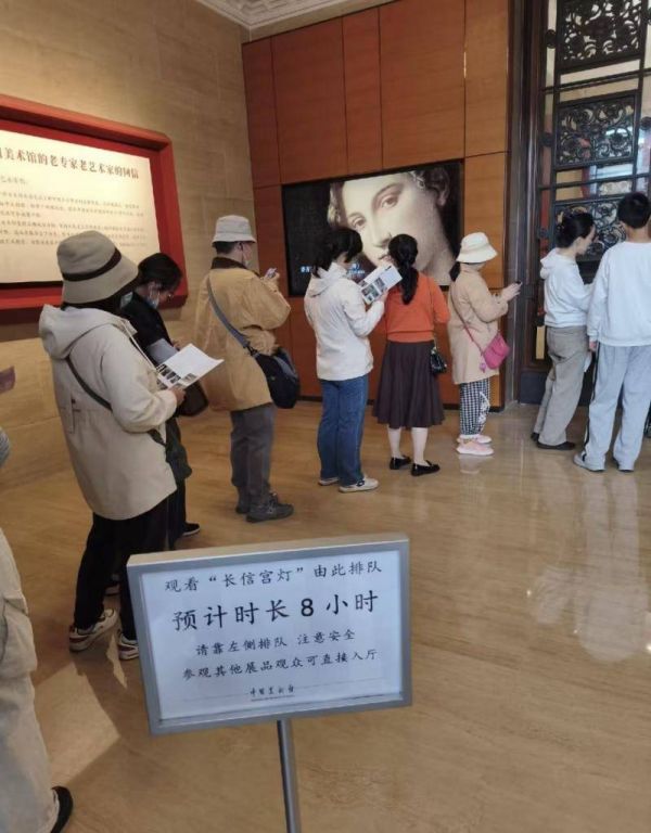 长信宫灯“出差”首日火爆,中国美术馆:预计排队八小时