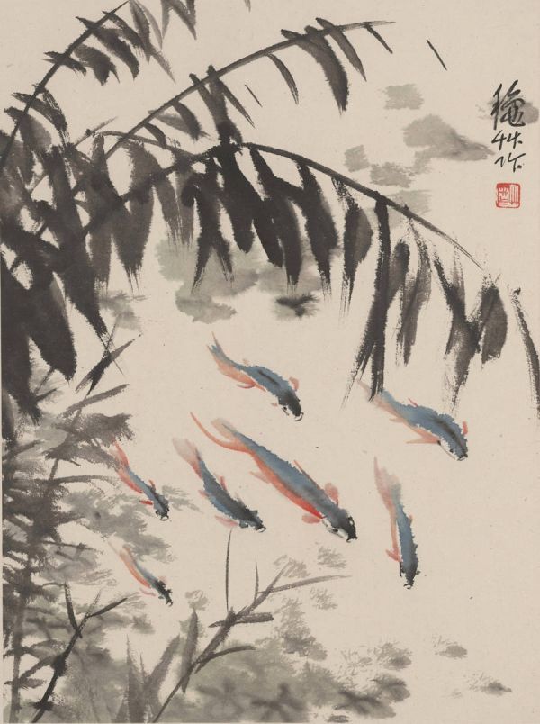 陈秋草《花鸟册页—芦苇鱼塘》