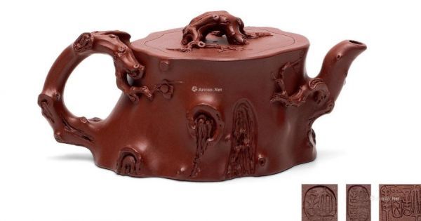 此外。除传统常规的方器和花卉之外。还有不规则或是雕塑类茶壶,也有人称之为奇形怪壶。然而它以奇中观秀、怪中生趣、怪而不丑而取胜。它往往是名师高手别出心裁的得意之作。如汉棠大师的“松段壶”、秀棠大师的“山鸡壶”等等,刻划逼真传神,形象十分生动可爱,其构思之精巧。