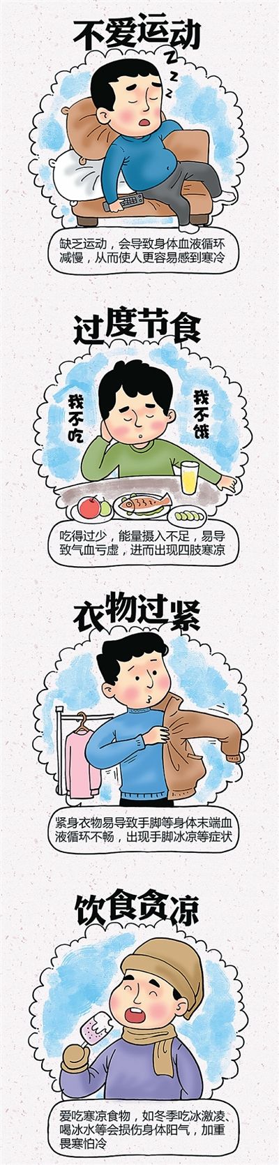 每到冬天,许多人都会感到手脚冰凉,即使穿得很厚,也难以真正暖和起来。为什么会有这种现象?该如何有效改善?本报记者对此进行了采访。