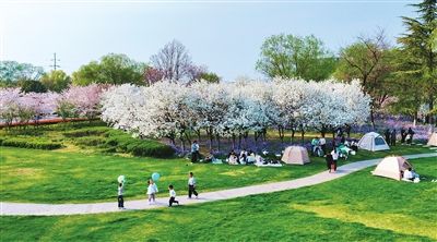 近日,江苏省宿迁市宿城区古黄河生态体育公园春意盎然,许多人前来踏青游玩,乐享春日时光。